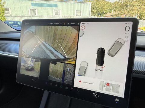 Finished in the very popular Black we think it looks stunning, particularly in its performance guise, the contrast of Black bodywork against the grey wheels and red callipers really make it stand out vs other versions of the Model 3. Inside, occupants are treated to a high-quality feel with vegan leather interior throughout and heated front seats. As any tech lover will know the Tesla model 3 is packed to the gunnels with technology, pretty much everything is controlled via the main display which is much easier to get accustomed to than you might think. Designed to work in partnership with a very intuitive app, the connectivity and network foresight developed by Tesla is second to none, its as simple as inputting a destination in the Navigate bar, the car will calculate precisely the distance, required charge stop locations, how long youll need to stop for and what level of battery charge the car will have on arrival.