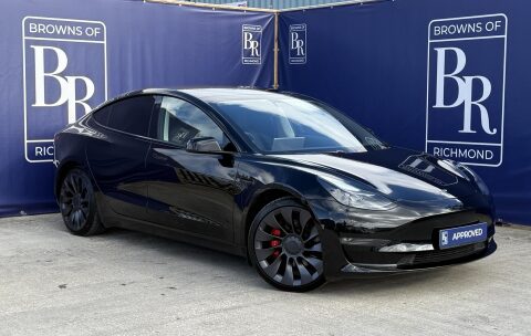 Browns of Richmond are delighted to offer this fantastic Tesla Model 3. Currently the benchmark for all EVs and still a number one choice for any aspiring EV driver. This one is the Performance derivative, benefiting from the larger battery pack (75 kWh) and beefier motors which result in a face peeling 0-60 time of just over 3 seconds. Other telltale signs of the performance upgrade include a carbon fire rear spoiler, those stunning 20-inch sonic silver alloy wheels and gloss red performance brake callipers. Tesla leads the way in terms of efficiency when it comes to electric cars, even though the performance version was built for speed, remarkably its still capable of well over 200 miles of range and upwards of 250 in the right conditions. There are huge advantages to going EV, here at Browns we consider ourselves as EV experts and will happily answer any and all questions you might have regarding an alternative fuel transition.